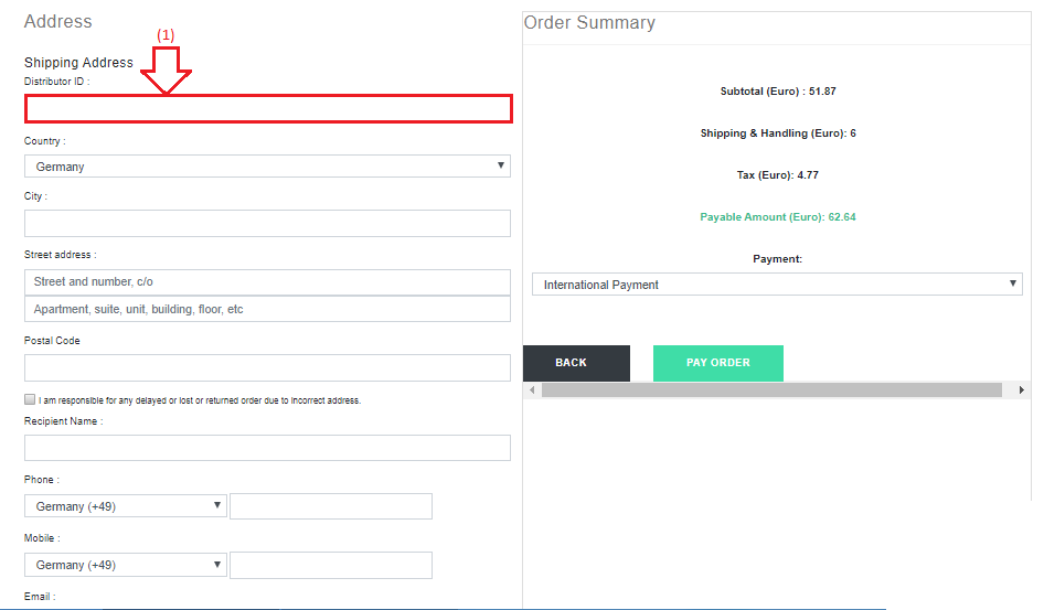 Also, you must enter your independent distributor ID (number 1).